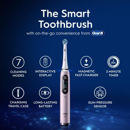 The iO 5 electric toothbrush features Oral-B’s best technology, combining a dentist-inspired round brush head with micro-vibrating bristles for a