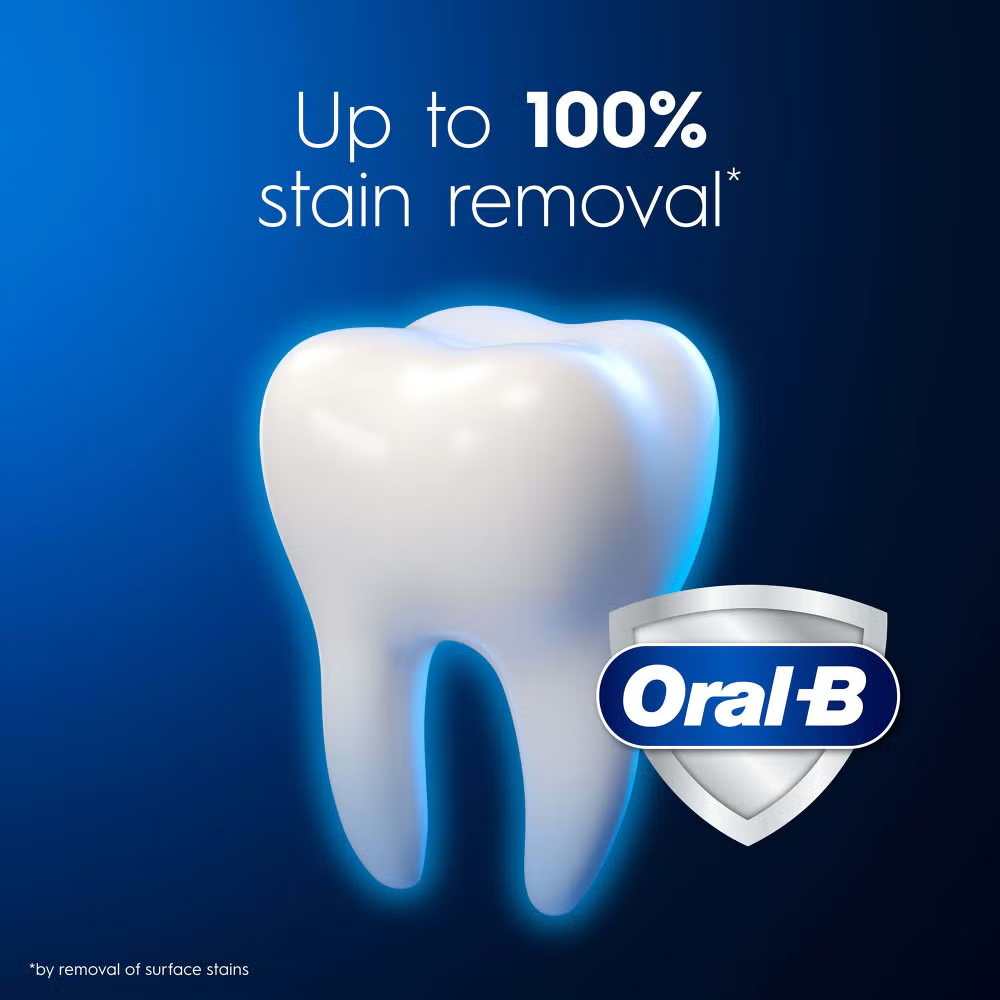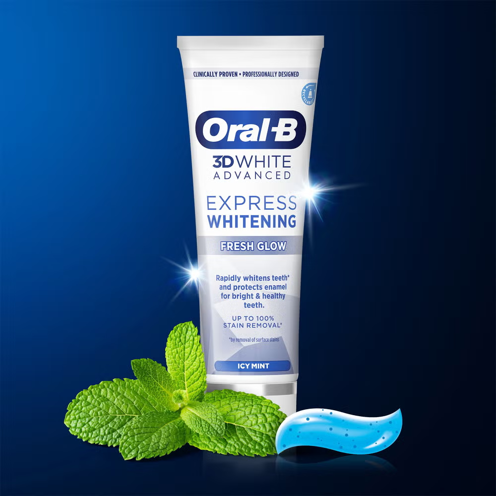 Oral-B 3D White Advanced Express Whitening toothpaste comes with the Oral-B whitening technology. It whitens by the removal of surface stains from the 1st brushing, removes up to 100% of surface stains in 5 days and protects teeth from acids and future surface stains.