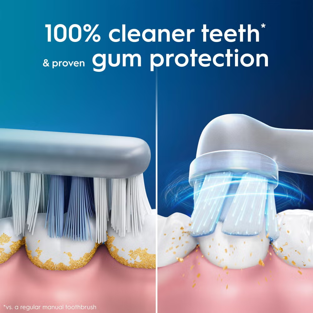 The iO 3 electric toothbrush features Oral-B’s best technology, combining a dentist-inspired round brush head with micro-vibrating bristles for a professional purifying clean feel at home. The Smart Pressure Sensor helps prevent you from brushing either too hard or too softly to better protect your gums and alerts you to time spent brushing with too much pressure. Replace your Oral-B iO toothbrush head every 3 months for the best results.