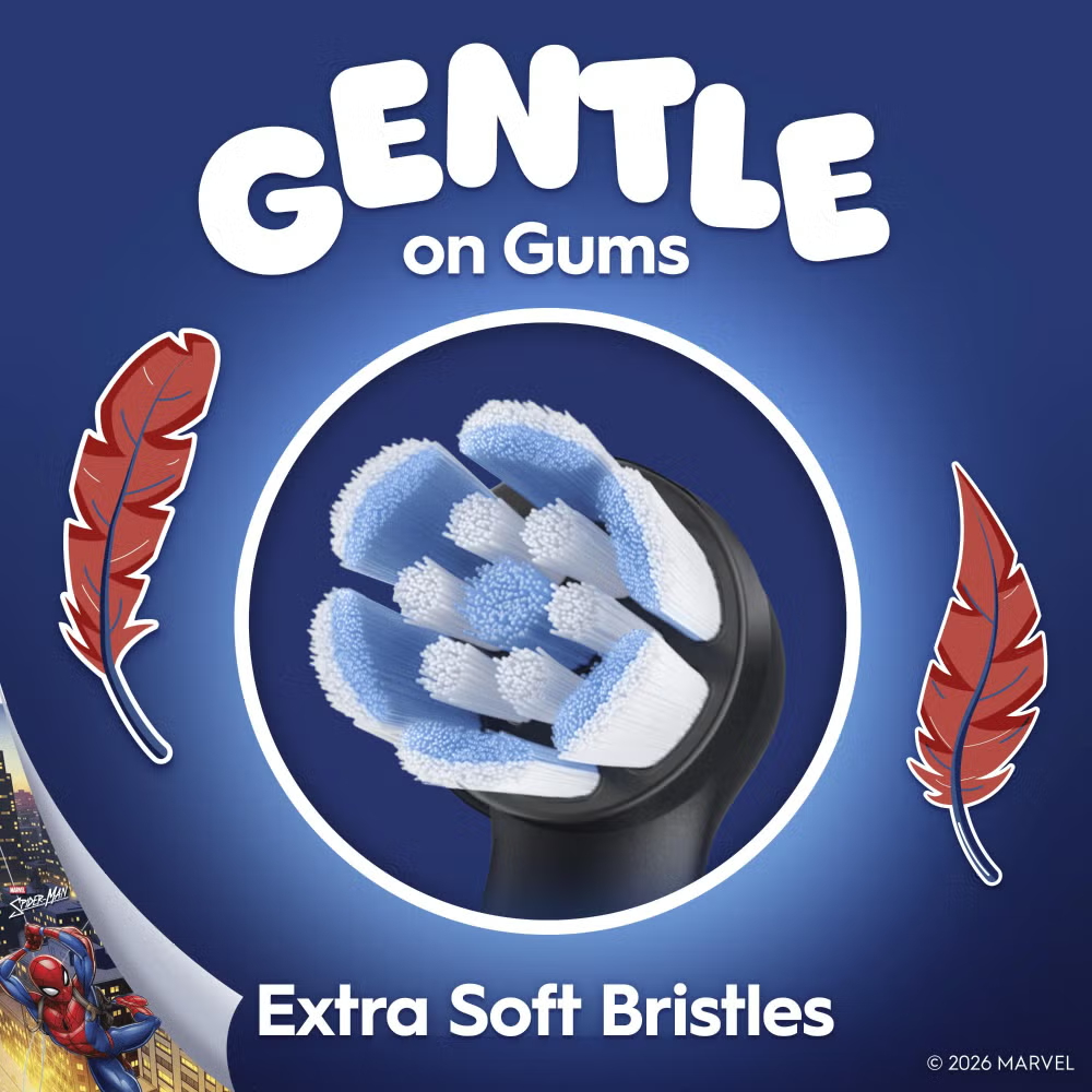 The Oral-B iO Kids 6+ toothbrush head gives kids the fun of Spiderman with the gentle, effective clean of a dentist-recommended Oral-B toothbrush. The extra soft bristles and small round head are specifically designed for kids ensuring being tough on cavities while gentle on gums & wobbly teeth.
