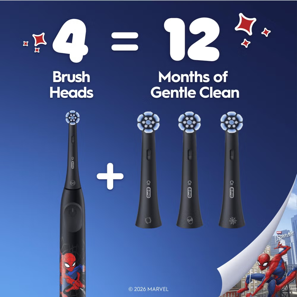 Oral-B iO Kids 6+ Marvel Spiderman Electric Toothbrush Head, Gentle on wobbly teeth & gums, 2