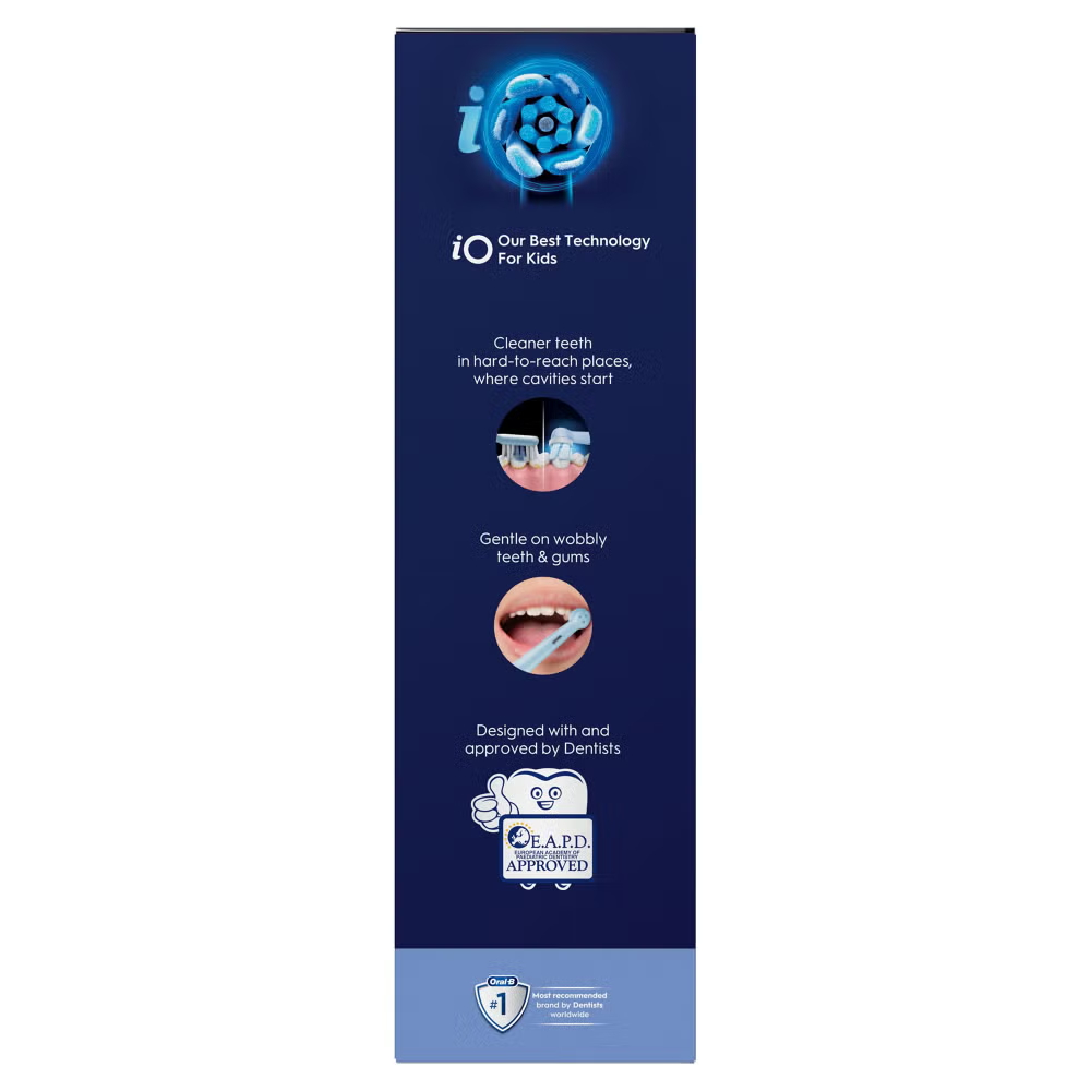 The Oral-B iO Kids electric toothbrush, designed with and recommended by dentists for kids aged 6+, offers gentle and effective cleaning. It features 3 brushing modes, including a unique kid-friendly sensitive mode, to ensure it is tough on cavities while remaining gentle on gums. It removes more plaque than a regular manual toothbrush. It also comes with a 2-minute music timer and provides access to the Disney Magic App to teach your kid healthy habits for life with Disney.
