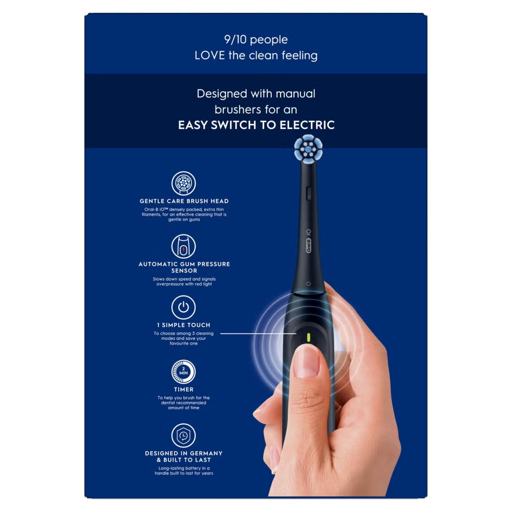 he iO2 electric toothbrush combines gentle micro-vibrations with a unique dentist-inspired round brush head for a purifying feel of a professional clean. Replace your Oral-B iO toothbrush head every 3 months for the best results.