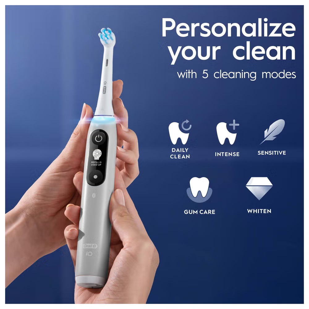 iO combines Oral-B’s unique round head with the gentle cleaning energy of micro-vibrating bristles.